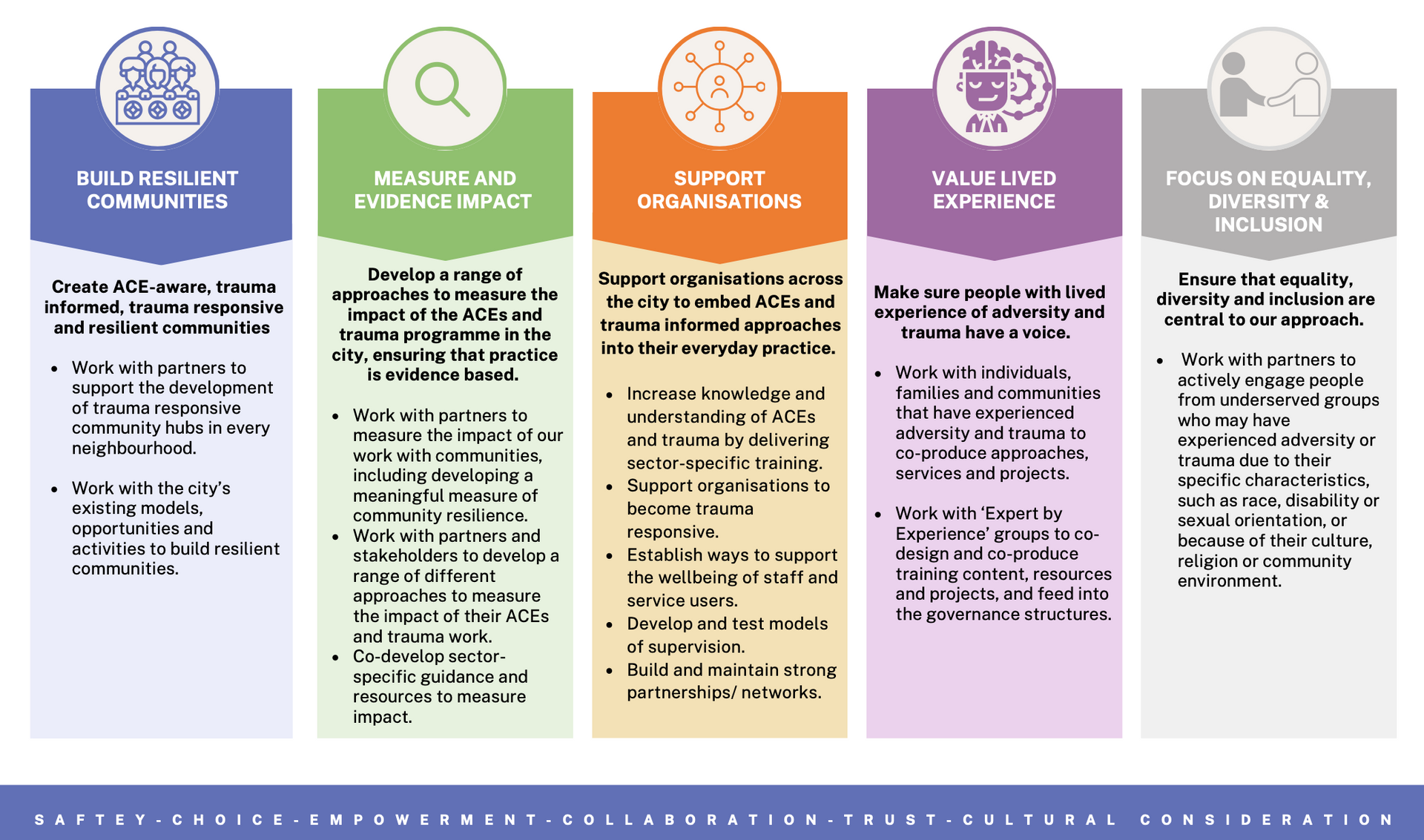 Develop a range of approaches to measure the impact of the strategy and ACEs and trauma activity in the city and ensure that practice is evidence based.