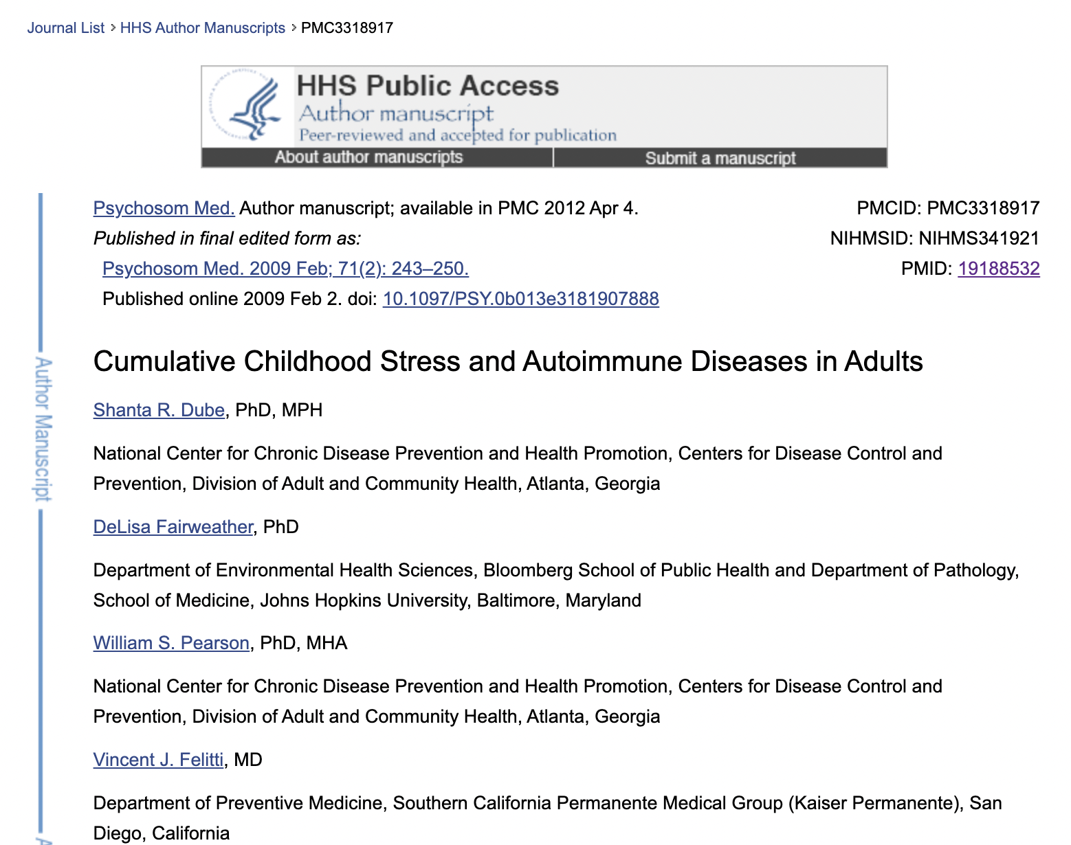 Adverse Childhood Experiences Resources at the Centre for Disease Control (CDC) (USA)