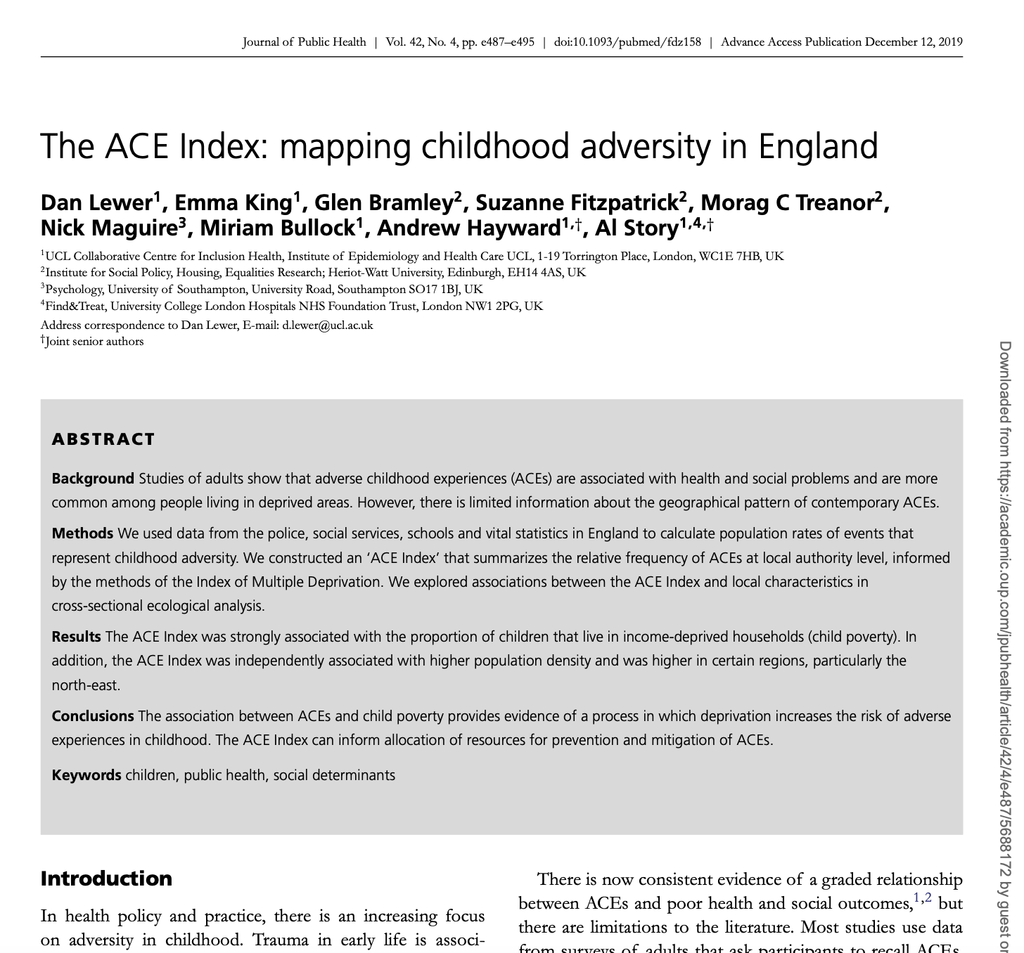 Health Foundation: Creating ACE-informed places: promoting a whole-system approach to tackling adverse childhood experiences in local communities. (UK)